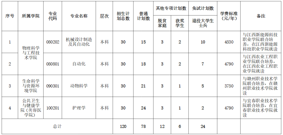 | 动物科学与赣州职业技术学院联合培养,在赣州职业技术学院就读 | 21 |