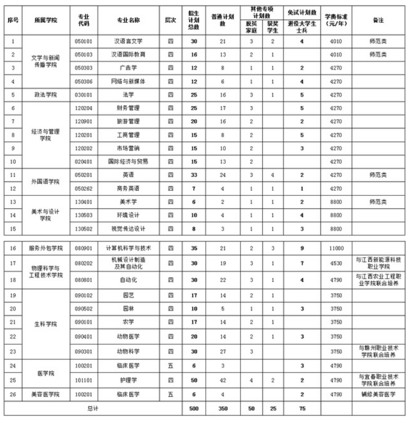 2024年宜春学院专升本招生专业有汉语言文学、汉语国际教育、广告学、网络与新媒体、法学、财务管理、旅游管理、工商管理、市场营销、国际经济与贸易、英语、商务英语、美术学、环境设计、视觉传达设计、计算机科学与技术、机械设计制造及其自动化、自动化、园艺、园林、农学、动物医学、动物科学、临床医学、护理学。