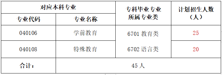我校退役大学生士兵免试招生计划为45人,具体专业及人数下表: