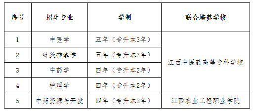 为完善江西省高层次技术技能型人才培养体系,满足人民群众“上好大学”的殷切期盼,增强职业教育服务、支撑地方经济社会发展能力,根据《江西省高等职业院校与本科高校联合培养本科层次技术技能型人才实施方案》等文件精神,开展中药学、中医学、针灸推拿学、护理学、中药资源与开发等专业(专升本)学生联合培养,方案如下: